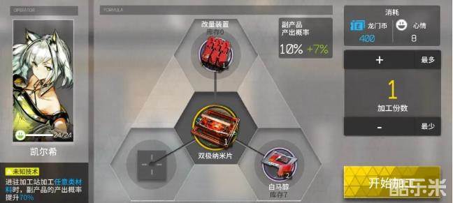 (精英0)进驻加工站加工任意类材料时,副产品的产出概率提升70%