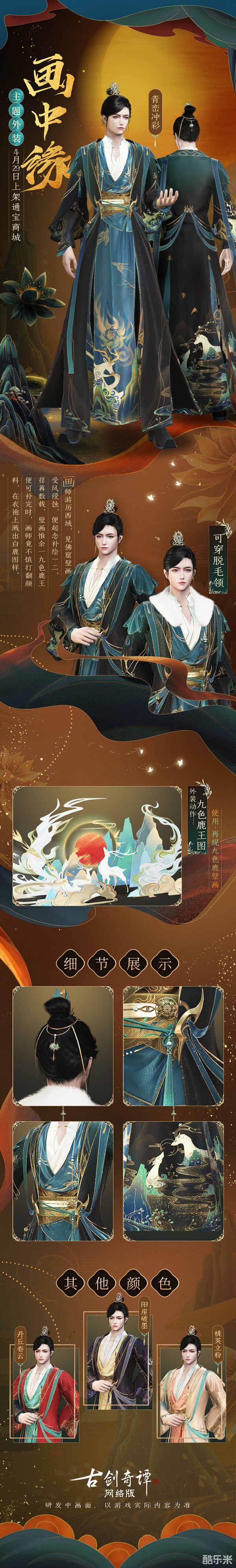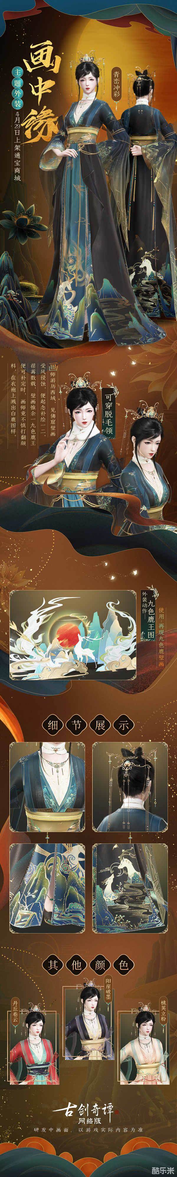 华美梦幻的九色鹿主题新衣“画中缘”今日上架,仙家弟子若是喜爱,记得前往通宝商城选购!别忘了关注古剑奇谭网络版官方网站、微博、微信以及B站账号,第一时间获取更多游戏相关的爆料内容哦!