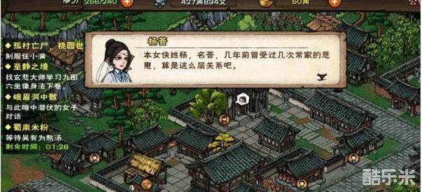 米粉任务,先找田里的吴有为,打听米粉(可能有吧,把能打听的都打听一遍),再找村里村长左边的老王打听米粉,再回吴有为打听蜀南米粉,他问你是不是冷月弟子,隨便答,之后跟着任务走,磨在洛阳成都都有。