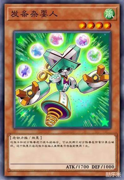 主要配合苏生墓地的发条杂耍人或者其他下级,打点1900可以应对环境中近乎所有的下级打手。属于较为优质的卡牌,配合发条杂耍人时,可以至少换掉对手两张怪兽卡(指发条无敌的效破)。