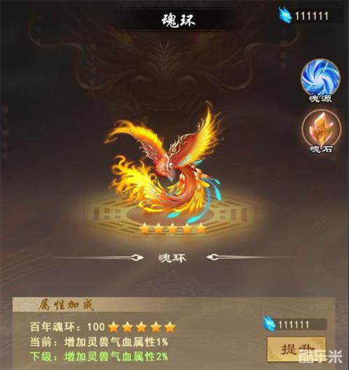 魂环分为4个等级:百年魂环、千年魂环、万年魂环和十万年魂环。对应提升的属性与比例也各不相同,玩家还可以使用“兽魂”道具提升魂环等级,“魂源”道具提升魂环星级,进而让魂环发挥更大的威力。