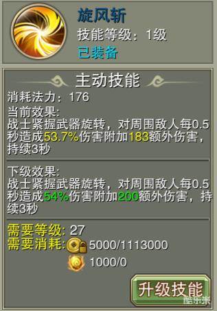 战士紧握武器旋转,对周围敌人每0.5秒造成一次伤害,技能共持续3秒。
