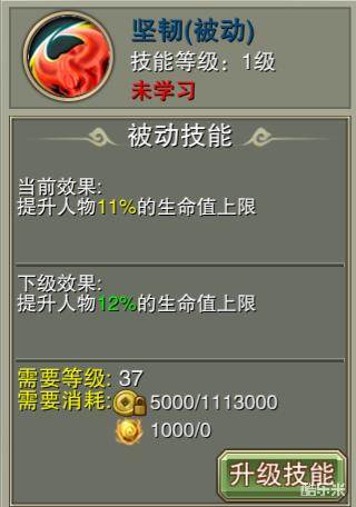 坚韧可以百分比地提升神将的血量上限。坚韧为被动技能。