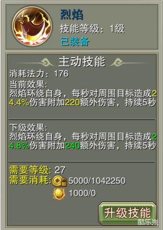 使烈焰环绕自身,每秒对周围目标造成伤害,持续5秒。