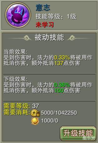 学会意志后,每次受到伤害时,将可使用法力值抵消部分伤害。