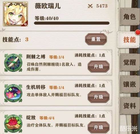 【绽放】[主动]薇欧瑞儿利用大自然的力量治疗全体队友,使队友每2秒恢复1次生命,持续6秒。同时赐福目标队友,使其下一击伤害挺高90%。群体攻击和多段攻击只有1个攻击有效。