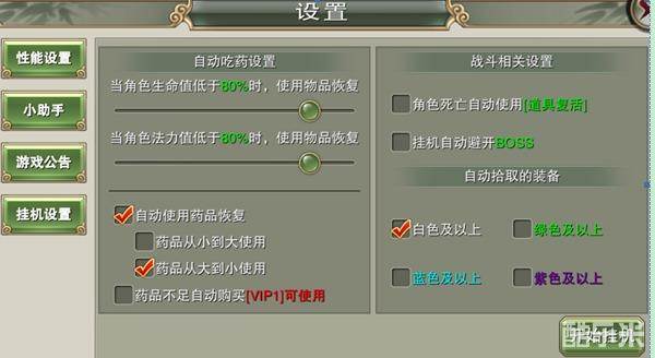 2、游戏里面可以根据个人的喜好进行挂机设置调试各项数据哦!服务是不是很周到,功能是不是很强大呢!