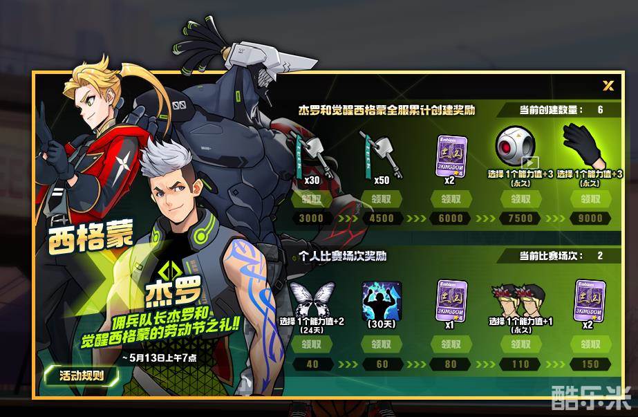 除了老玩家回归活动之外,玩家可以参与代号:杰罗抽取超特角色,劳动节之礼免费领取最强佣兵的无人机(悬浮装饰,自选+3,永久)仅限杰罗接收和使用;觉醒西格蒙手套(手部装饰,自选+3,永久)仅限觉醒西格蒙接收和使用。