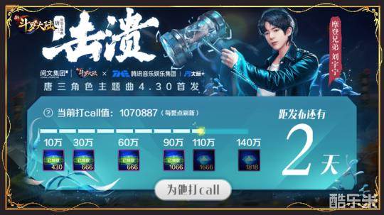 《新斗罗大陆》游戏内推出的应援打call活动,截止上线前2天已超过百万,可见大家对新歌的期待度还是非常高的~