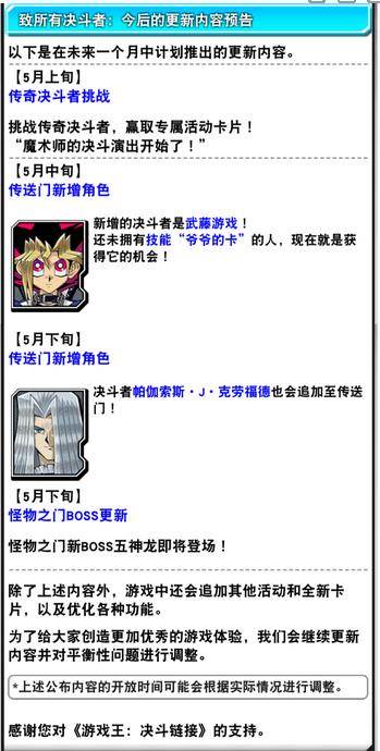 以上就是关于游戏王决斗链接5月活动的更新预告了,希望对大家有所帮助。