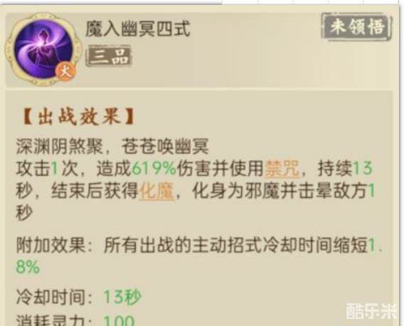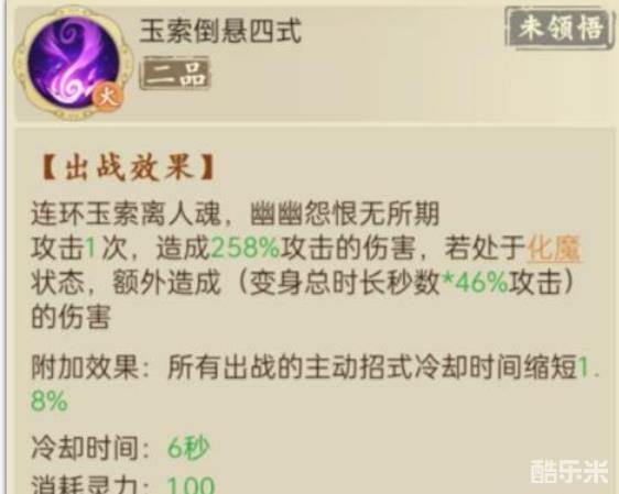 这里没有展示它们的四品招式,通常过渡到上阵仙法天裂地坼就不会用魔索组合了。万魔珠天赋也不用看,能点到那里基本上早已不用魔索很久了。