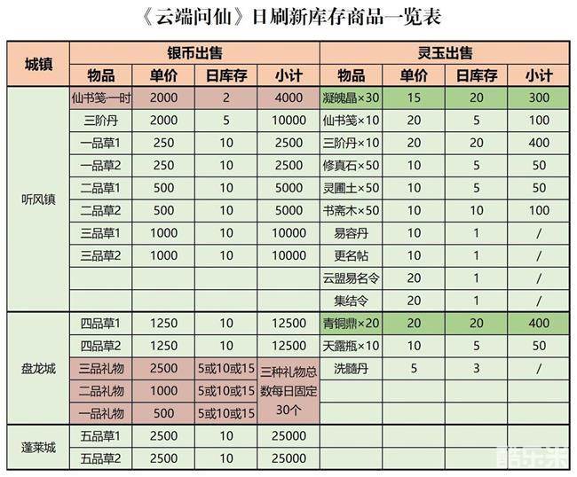 云端问仙商店物品大全