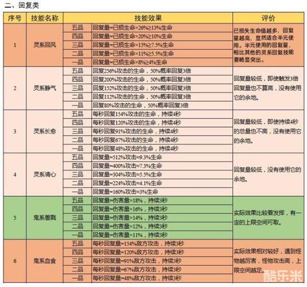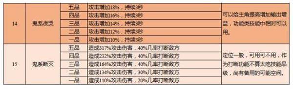 从技能总览里可以看到,灵系主加血,妖系主护盾,魔系主伤害,鬼系主吸血。