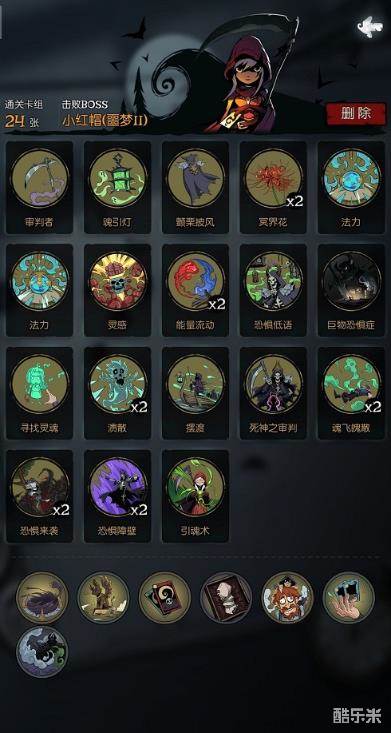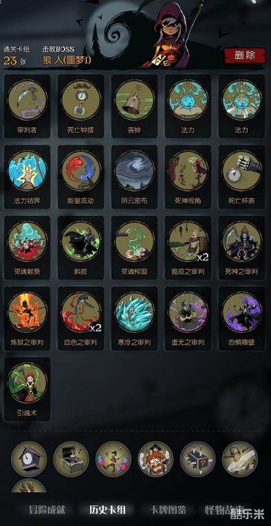 牌库很杂,算是欧皇吸法同命流,前期主要靠冥火配合命运操控、死神硬币打巨额伤害,后期就靠灵魂锁链、痛苦分担+各种掉血牌打伤害,并且汲取牌保持血线,冥火补伤害