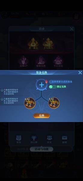 1、我们可以看到,同等级的装备两件可以兑换同等级的任意一件套装装备,这个机制可以让你迅速的得到你想要的装备。