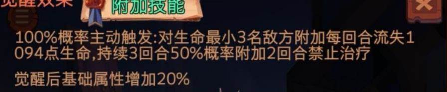 觉醒优先级一般,希勒觉醒后基本是一个纯血战的sss,在推图的时候几乎没有什么作用,希勒的觉醒技能禁疗在血战的时候可以低战打高战。