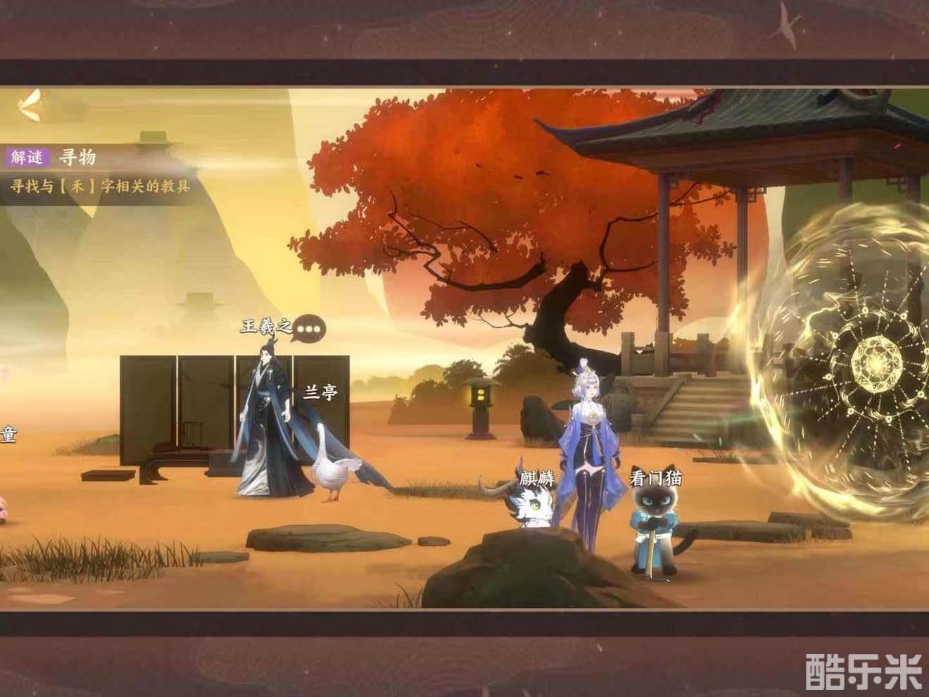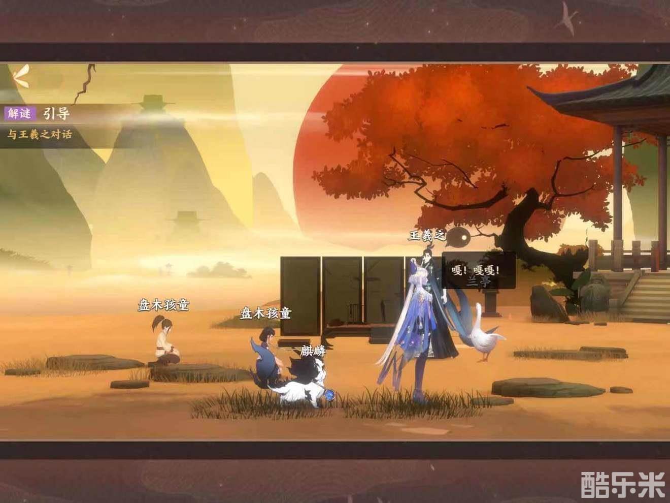 剧情走完,引导提示我们去找王羲之,往右走进蓝色箭头,传送!再往右走,就能找到王羲之了。