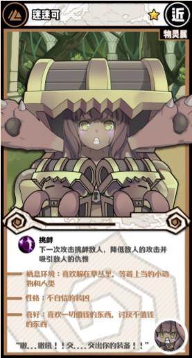 | 获取途径 | 推图(1-7、1-11、1-16、3-14、3-16) 市场抽蛋(莉莉托斯、北赛拉姆) 品库金币抽蛋(莉莉托斯、北赛拉姆) 品库氪金抽蛋、野外探索(破败仓库) |