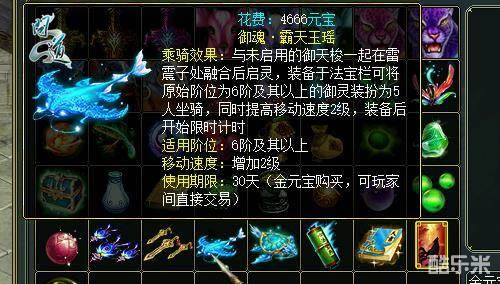 不仅如此,游戏中的10阶御灵九尾仙狐还可以与孔雀翎、轩辕神剑、霸天玉瑶、九天玄龟相结合,成为多人坐骑。各位道友在拿到御魂之后,就可以前往地府找到雷震子,并将御魂与未启用的御天梭一起在雷震子处融合,才能够将其启灵。值得注意的是,在御灵安装之后系统也将开启倒计时,每个御灵的使用时长为30天,30天后玩家的御魂将自动失效。