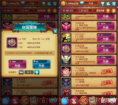 首先想要获得大量金钱,各位勇者需要优先准备一样道具,那就是“财富图腾”。这个图腾顾名思义,是为了帮助勇者们赚取大量金钱而存在的。一旦在闯关冒险中拥有这个图腾,则可以大幅度增加勇者们击杀怪物获得的金钱数量。最关键的是这个图腾还是无限制升级类图腾,只要将其一路升级下去,将可以获得越来越多的金钱!对于勇者们来说它绝对是成为富翁最重要的一个环节!