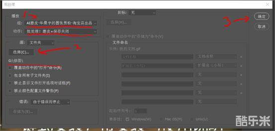 按图示分别选好动作组和动作,然后点 选择,选择你要批处理的文件夹,然后点确认