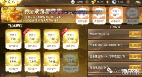 除了登陆赠送的充值卡以外,玩家还可以从日常活动中获得