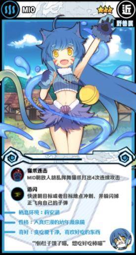 | 猫爪连击 | 7 | 8s | MIO朝敌人胡乱地挥舞猫爪,打出连续的4次攻击,每次造成 80/100/120%至100/120/150%之间的随机伤害。 |