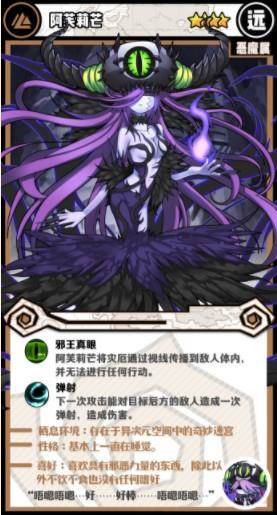 | 邪王真眼 | 14 | 15s | 所有正对阿芙莉芒的敌人受到140/165/190%伤害并且无法进行行动持续2.5/3/3.5秒。 |