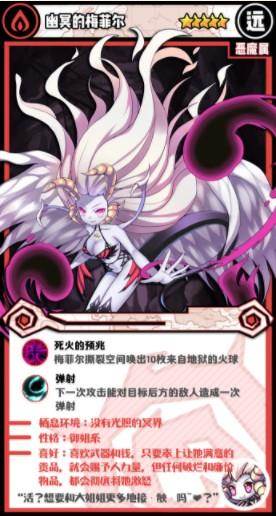 《牧羊人之心中》拥有形形色色的魔物娘们,每一个魔物娘都有着不同的样貌和属性技能,知道魔物娘的确切信息队以玩家来说十分重要,那么5星魔物娘幽冥的梅菲尔的属性怎么样呢?下面小编就来告诉你。