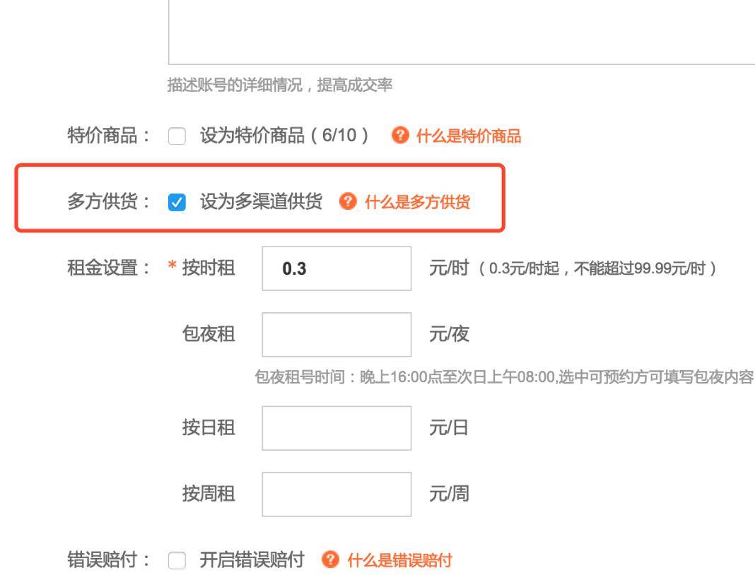 为帮助大家能够将自己的闲置账号出租出去获取更多收益,现平台携手其他合作渠道推出账号“多方供货”发布功能!