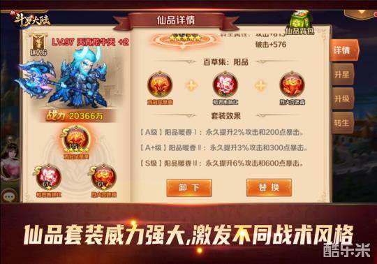 而不同的仙品套装也会对应的不同的特点,比如阳品可以提升攻击和暴击,而寒品可以提升攻击和攻速。这样合理使用不同的仙品套装,就可以形成暴击流、攻速流等不同的战术风格。