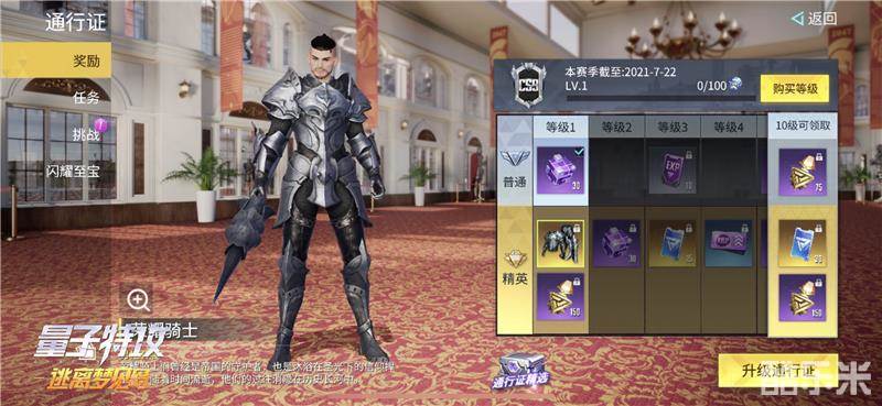 《量子特攻》全新赛季“骑士荣光”,已经正式打响,漫游者们将化身身着重甲的古典骑士,空降梦见岛来一场别开生面的竞技对决!通行证背景迭代,新屿市的主题展览即将开启,隐藏在展览背后的非法行为需要漫游者前来阻止!不断提升通行证等级,把丰厚的外观奖励全部收入囊中吧——升级通行证后,还能直接拥有全新时装“荣耀骑士”,让你引领夏日时尚新风潮!
