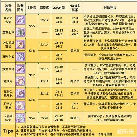 所以对于大部分玩家来说,并不推荐会战前每日超过6体去刷取装备,一来是因为夏日开始的限定连发离我们并不远,余钻不多的玩家需要合理分配宝石的支出,多一份宝石就多一份希望,二来是因为本次会战相关的武器消耗量并不是很多,在掉落正常的情况下6体足以满足会战所需,当然,余钻充裕并且对两边都想兼顾的玩家也可以多买一些体力以维持BOX的强度,获取更多的宝石。