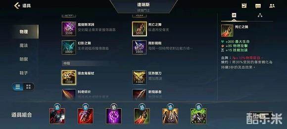 死亡之舞提供的攻击力依然很高,同时300的生命值加成能够提升螳螂的容错率。10%的物理吸血为螳螂提供了续航能力,将受到伤害的30%转化为流血效果能够防止螳螂遭到爆发伤害被秒杀掉。