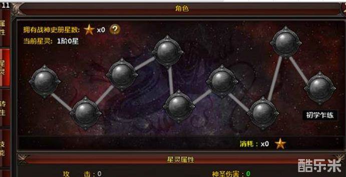 打开下方菜单角色面板,点开星灵界面,消耗战神史册获得的星星,可以提高角色自身属性。