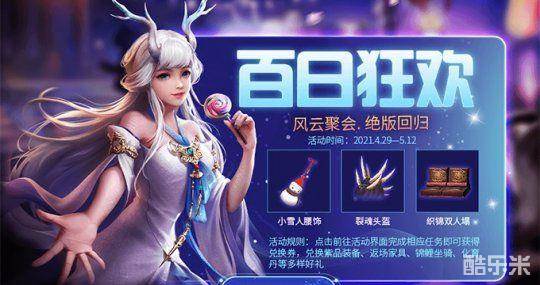 经典道具 百日庆限时返场在活动时间4月29日-5月5日,根据游戏内活动页面完成提示即可获得专属兑换券。小雪人腰饰、织锦双人榻、锦鲤坐骑等道具百日庆限时返场!还有裂魂头盔、化育丹等奖励等你来薅!