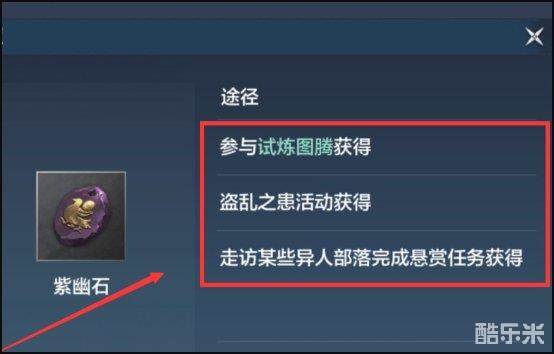 4、即可获得紫幽石的3个获取渠道,这三种道具需要参加【悬赏任务】和【盗乱之患】这两个活动获得。