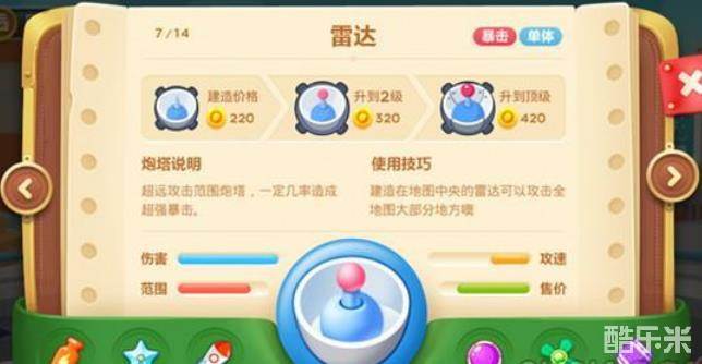 缺点,那就攻击速度太慢,即使有瓶子炮的加成,雷达的攻击速度也是慢的要命,所以如果在资金不够的情况下,不要贸然的去建造雷达,因为雷达很烧钱!