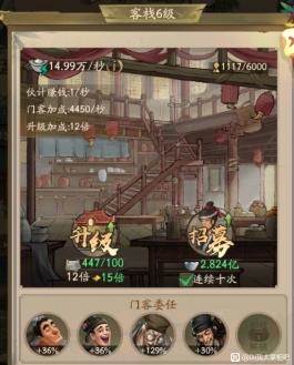 赚钱速度=((伙计赚钱×伙计数量)+门客加成)×其它加成