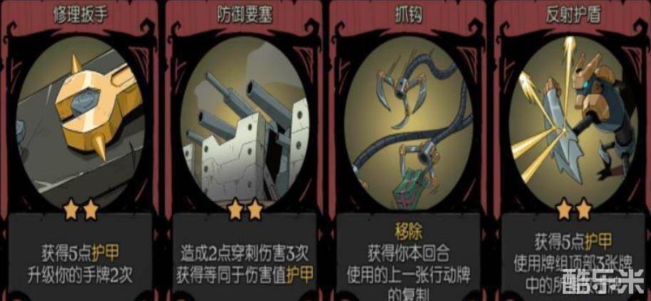 我们选择牌的时候一定要往里面放进一张修理扳手,这个牌在我们的整体中都会起到一个非常重要的作用,同时我们也需要加入一张防御要塞,这是我们保命的好手牌。