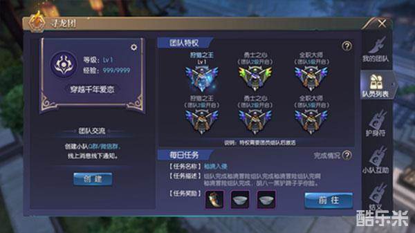2、成员拥有共同的成长目标。成员每天完成寻龙团的日常任务,可以提升寻龙团的等级。
