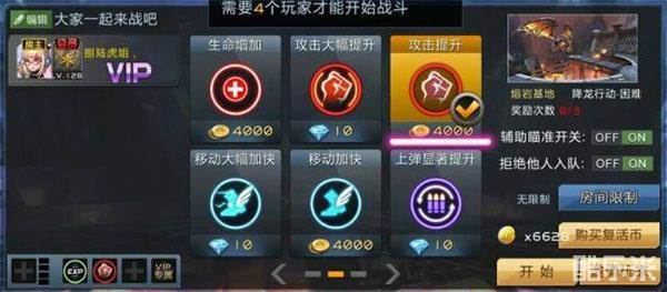 在困难降龙模式开始之前,大家可以在主界面买一些BUFF,主武器弹夹和子弹数量增加的BUFF,可以最大程度的提升玩家在局内的弹药数量。同时也可以使用金币够买攻击提升BUFF和战斗经验BUFF,这样可以提升玩家在游戏中的攻击力。