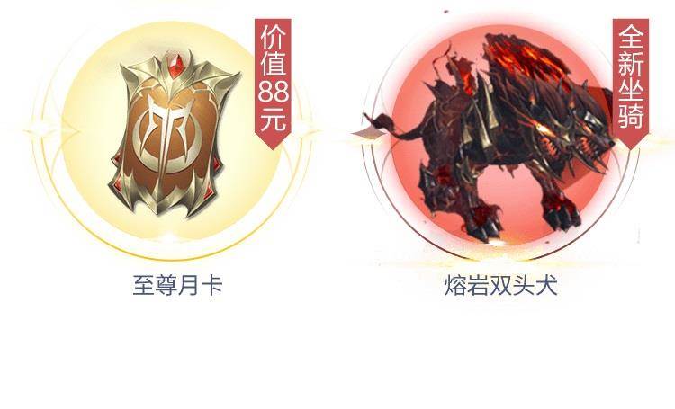 这波超级大放送绝对不小气!至尊月卡够不够壕?酷炫拉风的全新坐骑熔岩双头犬想不想要?公测期间统统送!让你能随时随地享受到其他玩家的注目礼!