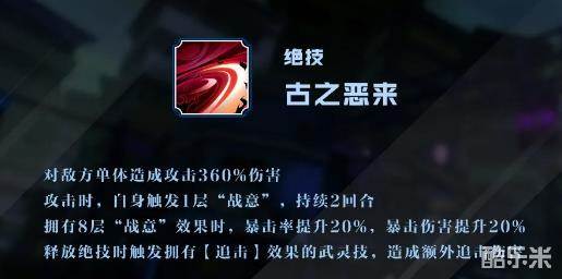 由于绝技可以触发“追击”效果,因此应选择有“追击”效果的武灵技。灵技推荐“暴极斩”:不仅在首位释放时可额外获得自身颜色灵气,还能在释放技能后提升暴击率,相当适合依靠暴击打极限输出的炼狱典韦。武技方面推荐“有死无生”,在被攻击时可以恢复生命,属于被动反击型技能;或者“鬼刃汲元”,攻击后可按伤害比例恢复生命,属于主动出击型技能。