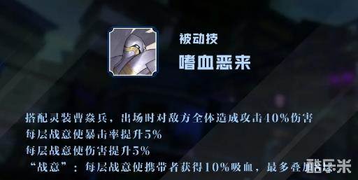 炼狱典韦的输出比较依靠续航,即多次出手叠加战意,直到叠满8层获得最大收益。同时战意又能为炼狱典韦持续增强吸血能力,为他的持续战场提供稳定体力恢复,从而使他成为可以搭配任何体系的“自给自足型”输出。