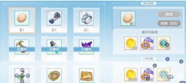 提交物品完成订单可获得大量的珂尔、贡献值和巨量的资金!