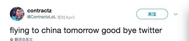 C9打野Contractz:明天要飞中国了,拜拜拉twitter