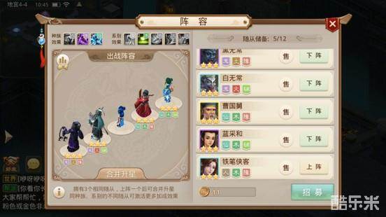 到了三层可以刷新到金色随从,但是金色随从刷新率低,不建议强行带金色,据我估计三层金色刷新率不到5%。把蓝采和、黑白无常提升到二星,不出意外的话三层应该也都能过去了。铜钱可以优先强化属性,感觉自己三层能过去就不强行去刷新随从了。