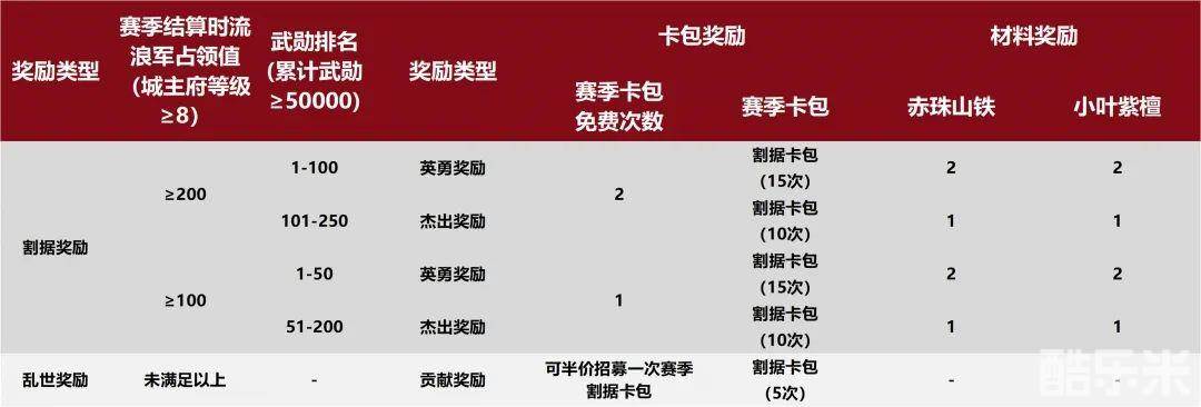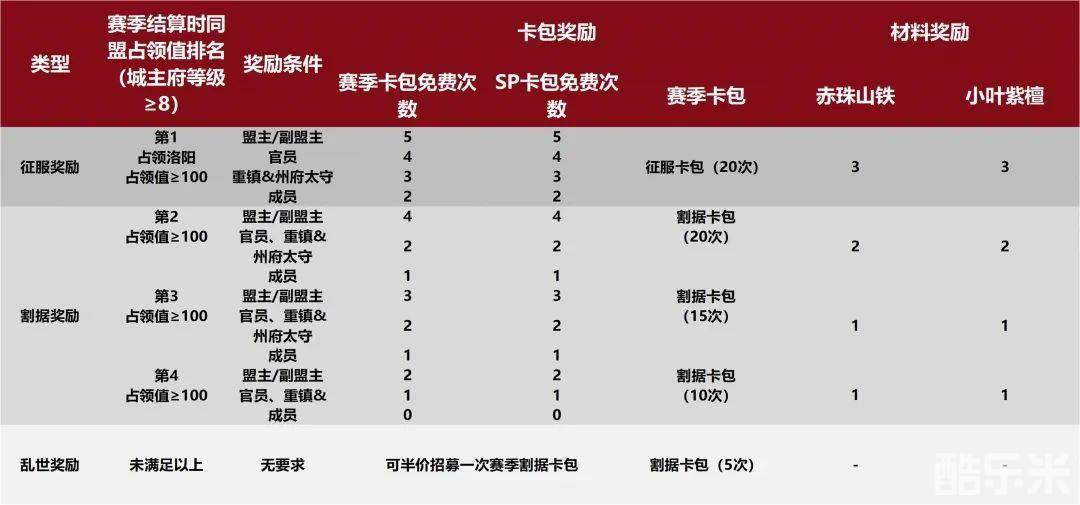 本赛季中将采用同盟占领值排名的方式进行结算,具体结算规则见下表。