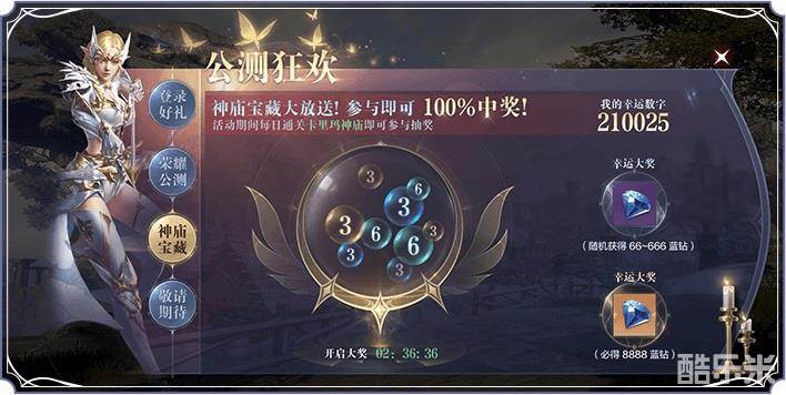 公测期间,大家只要每日参与卡里玛神庙,就可以进入老板娘的乐透奖池抽豪华大奖!每晚10点,所有进入奖池的玩家都可以获得666蓝钻暴击礼包!如果你欧气爆棚,说不定还能获得终极大奖——超豪华蓝钻大礼包——8888蓝钻一份!